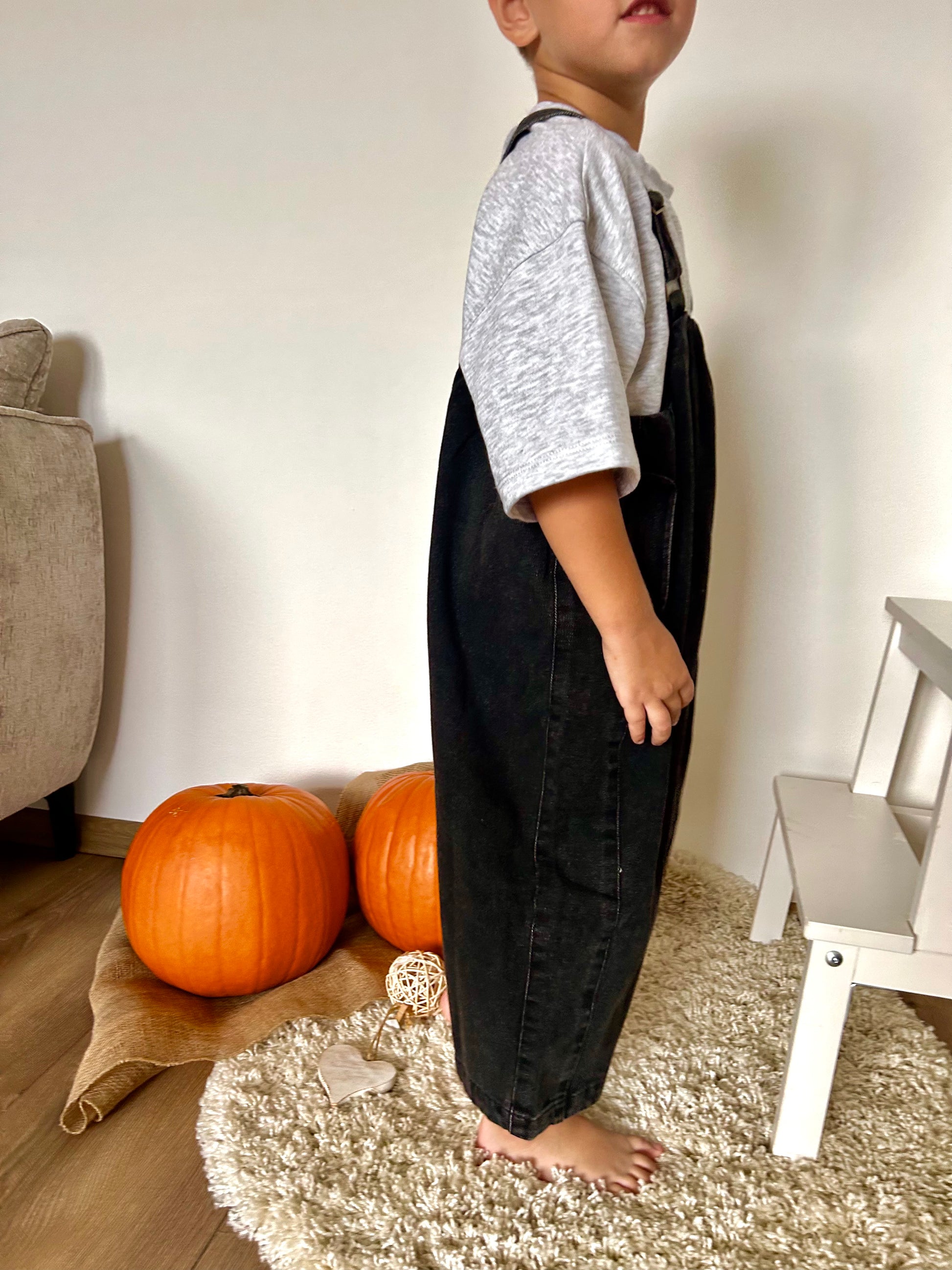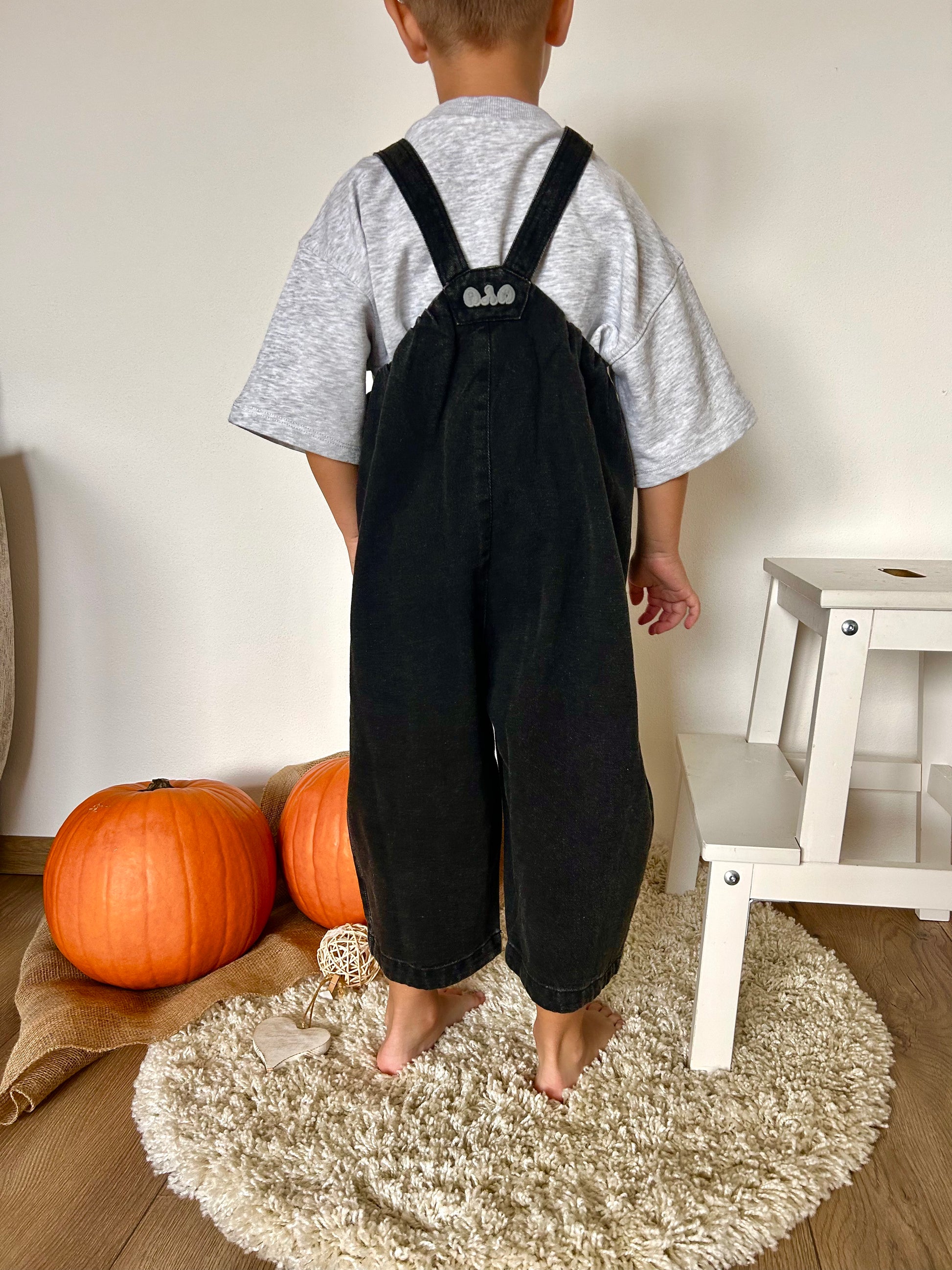 Minimalistický čierny overal v oversize strihu – univerzálny základ šatníka, ktorý sadne k akémukoľvek štýlu.
